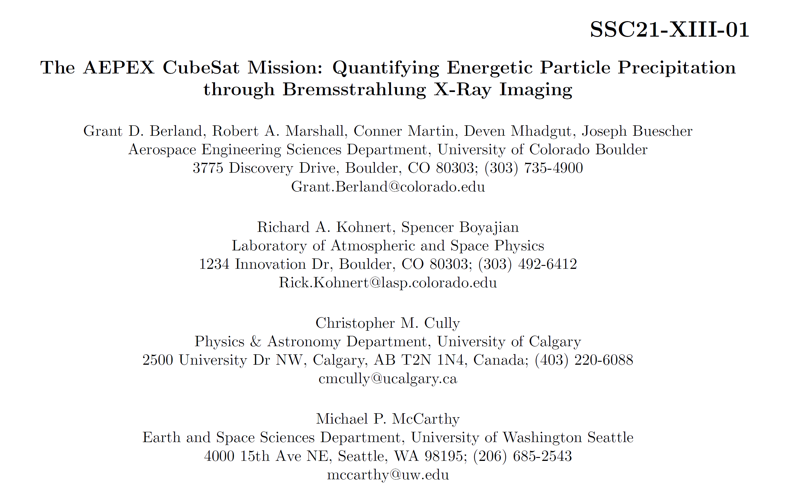 As a mechanical engineer at CCAR, I worked closely with LASP on the structural and thermal design of a 6U cubesat, AEPEX. The primary mission of the satellite was to image and measure high-altitude X-ray emissions for the quantification of energetic particle precipitation (EPP). I was responsible for chassis design and major decisions related to component placement inside it. I also assisted the science team by designing the science instrument enclosure. In order to validate these designs I performed all kinds of structural analyses in solidworks including modal, static and random vibration. The static and dynamic loading tests were based on requirements defined by the cubesat dispenser and the launch provider. In addition to this, I was tasked with the thermal design of the instrument and the overall spacecraft. Day-in-the-life test cases were simulated in Thermal desktop in order to ensure thatall elements of the spacecraft are maintained within temperature limits under the worst case cold (eclipse), worst case hot conditions, and nominal operations. I also created some preliminary thermal-vacuum test plans for further verification. Finally, I also designed and manufactured a prototype of the X-ray imaging instrument for future ground testing.
